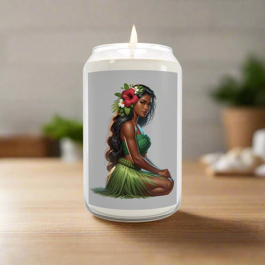 Scented Candle, Hula Girl with Red Hibiscus 13.75 oz Glass